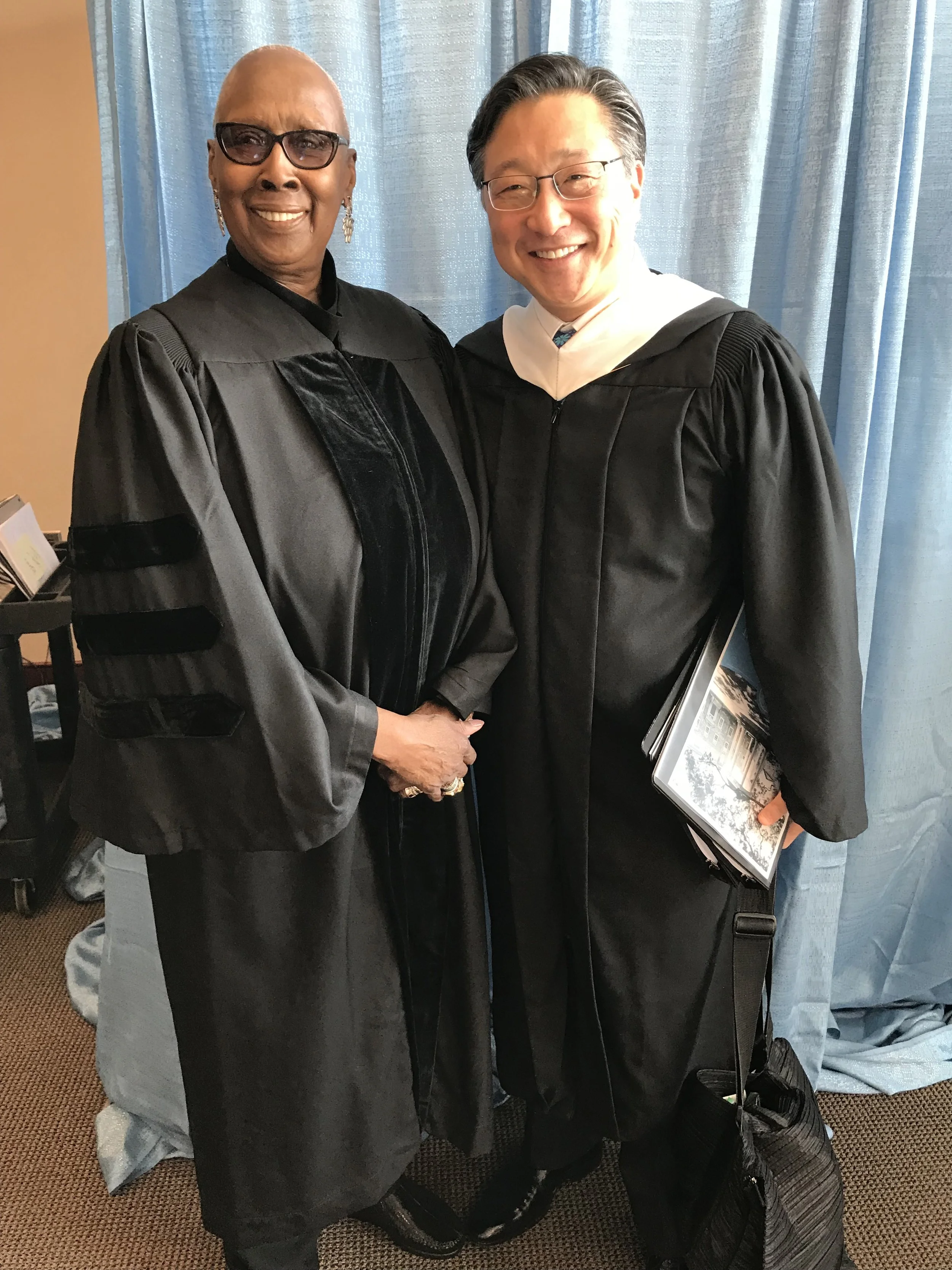 Emil Kang presents the late Judith Jamison for an honorary Doctor of Fine Arts as part of the 2018 Commencement Exercises at The University of North Carolina at Chapel Hill (Photo credit: Lisa Kang).